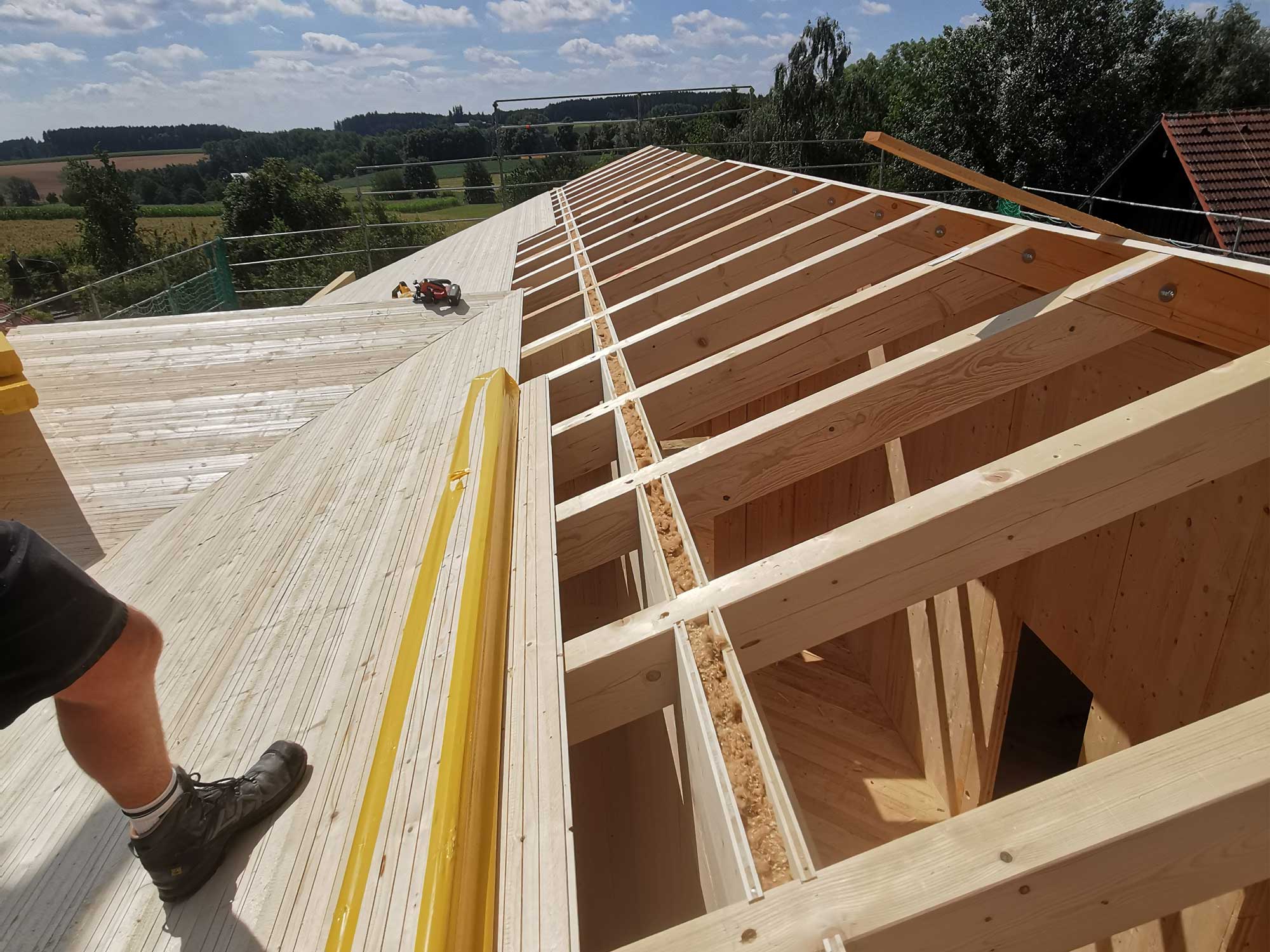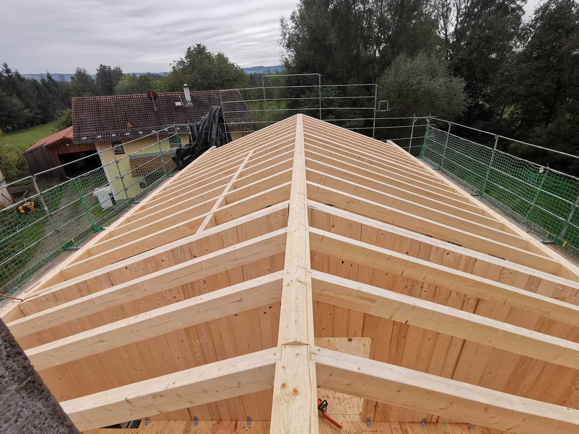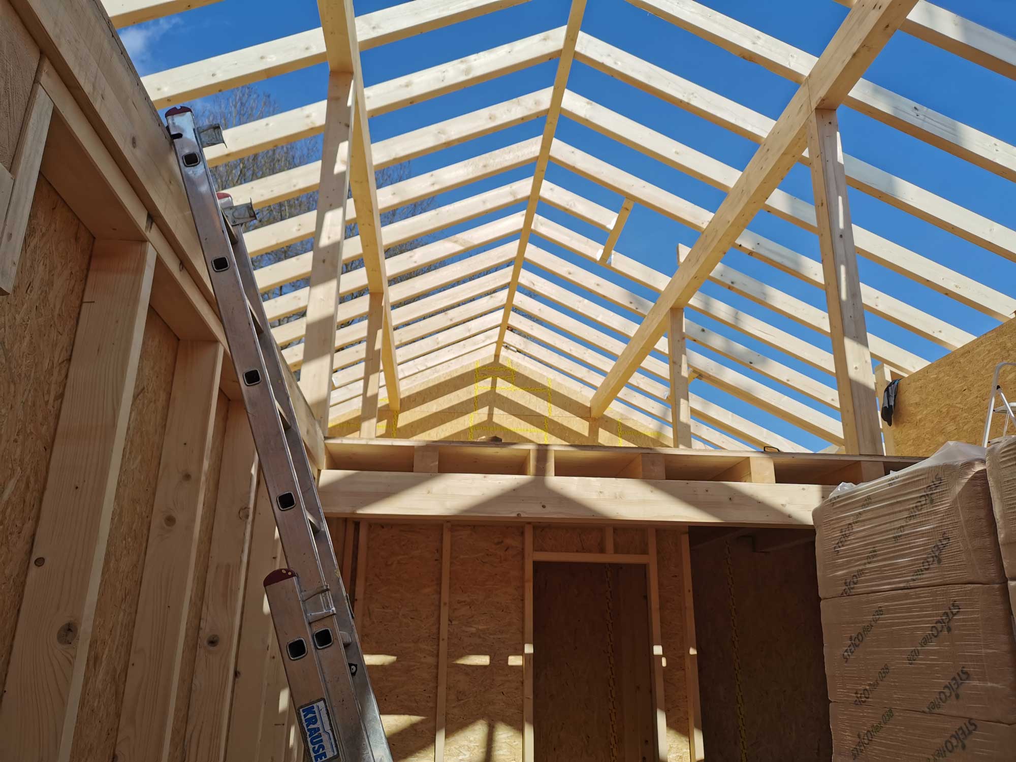 Satteldach mit Quergiebel, Sichtdachstuhl