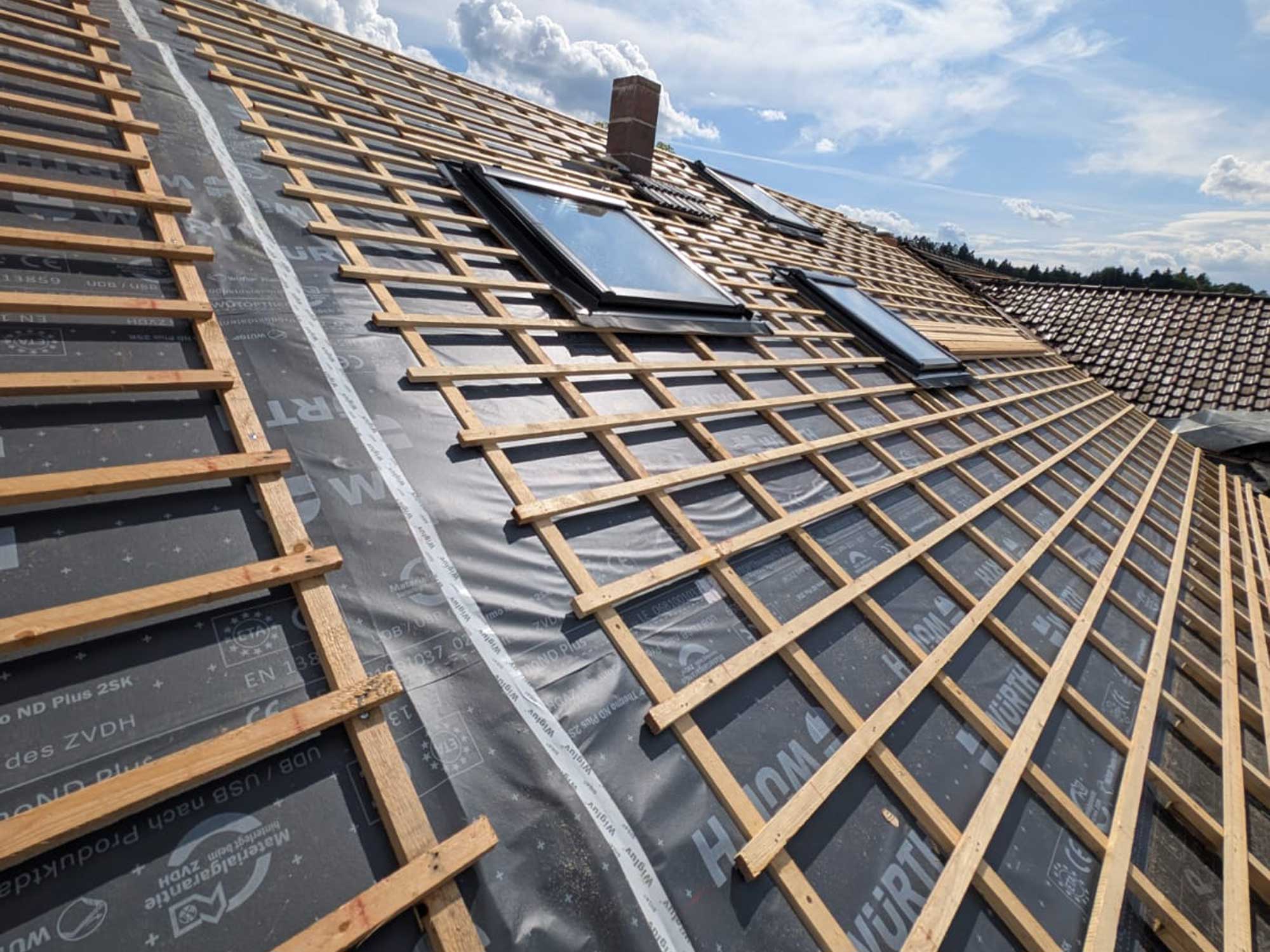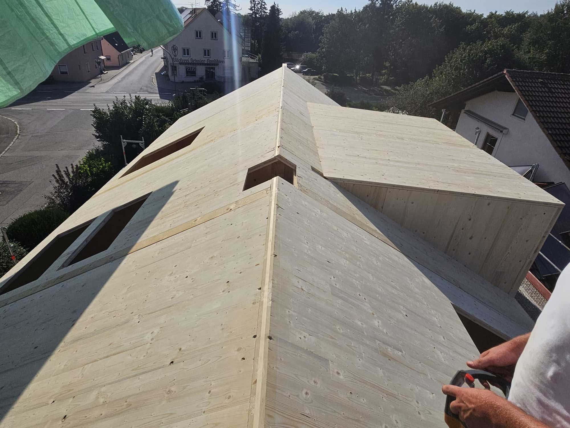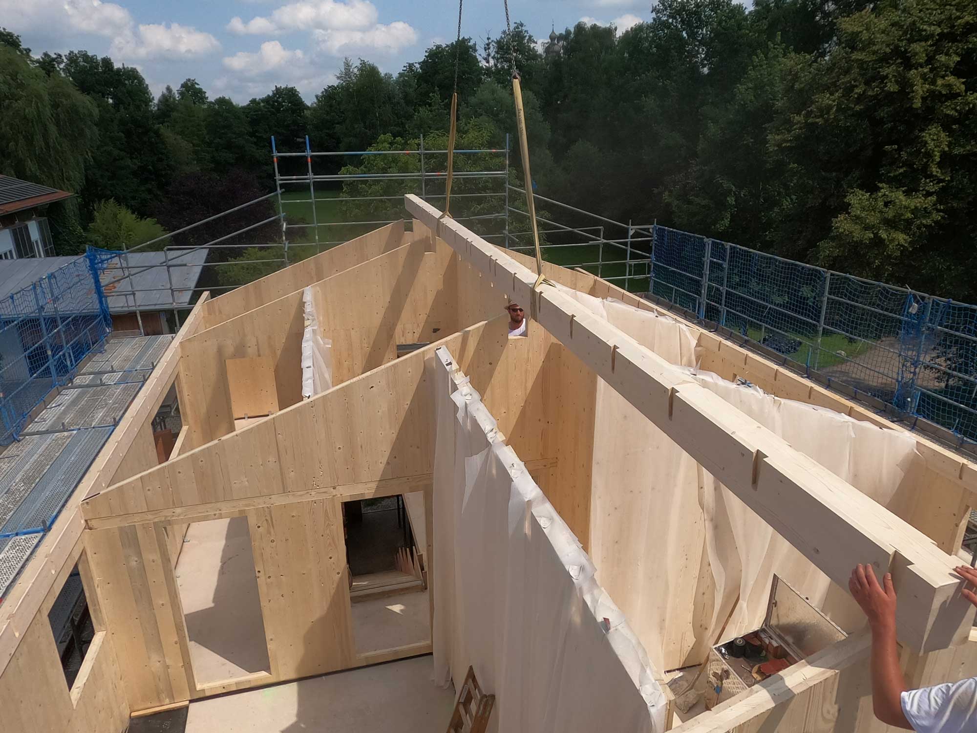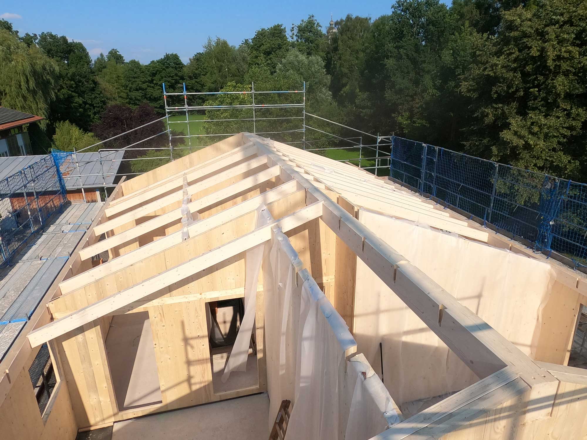 Satteldach mit Quergiebel, Sichtdachstuhl