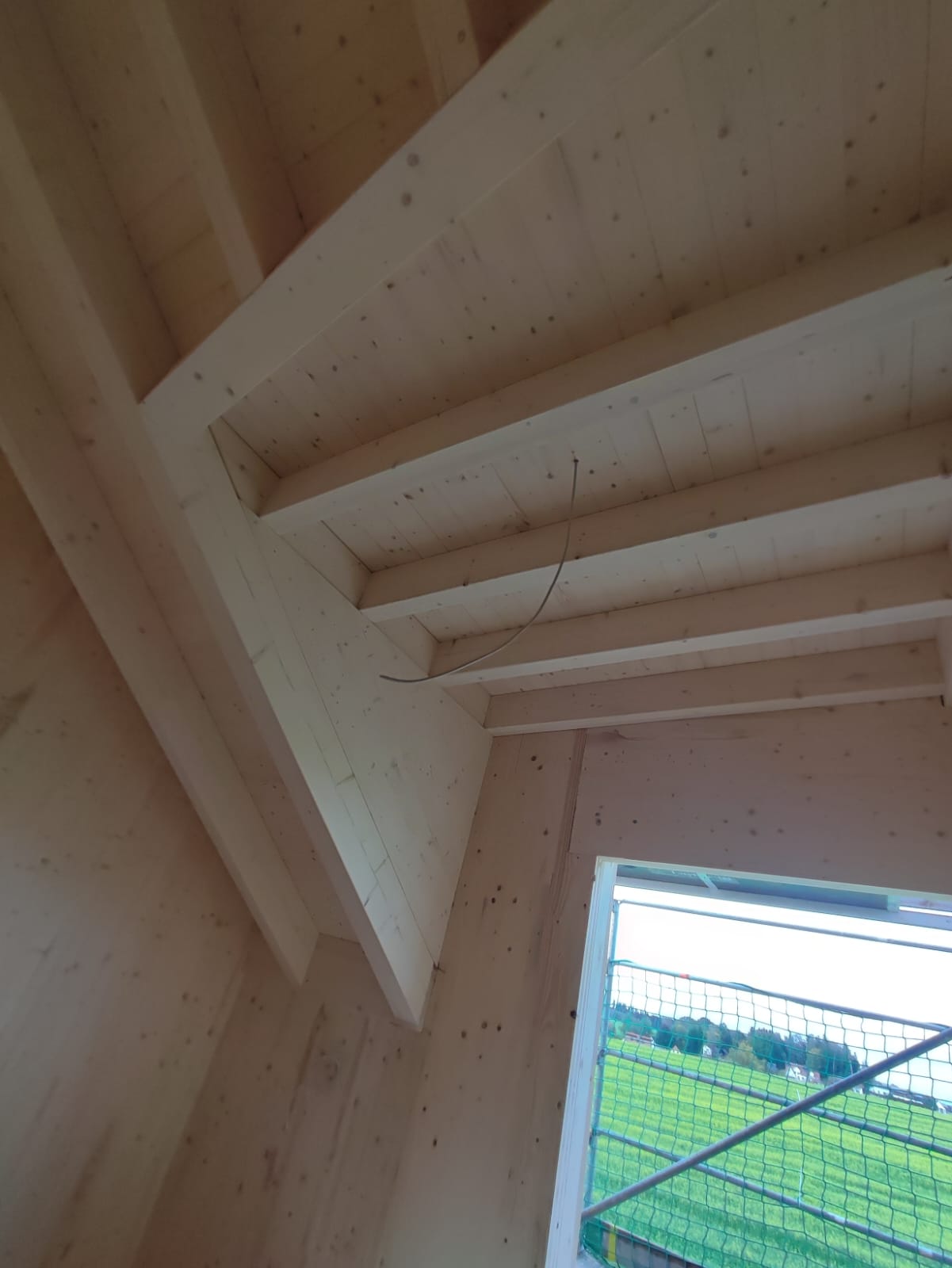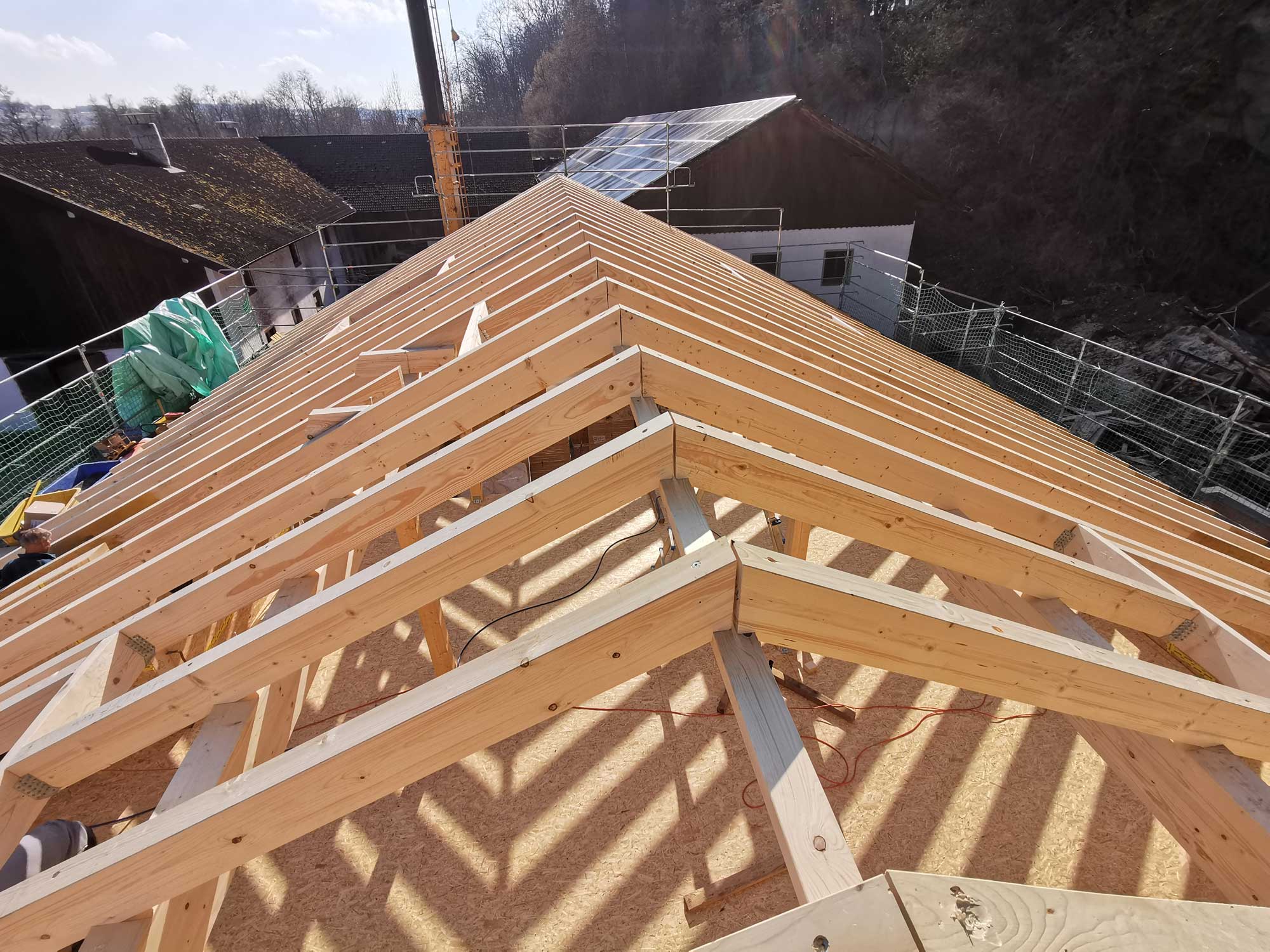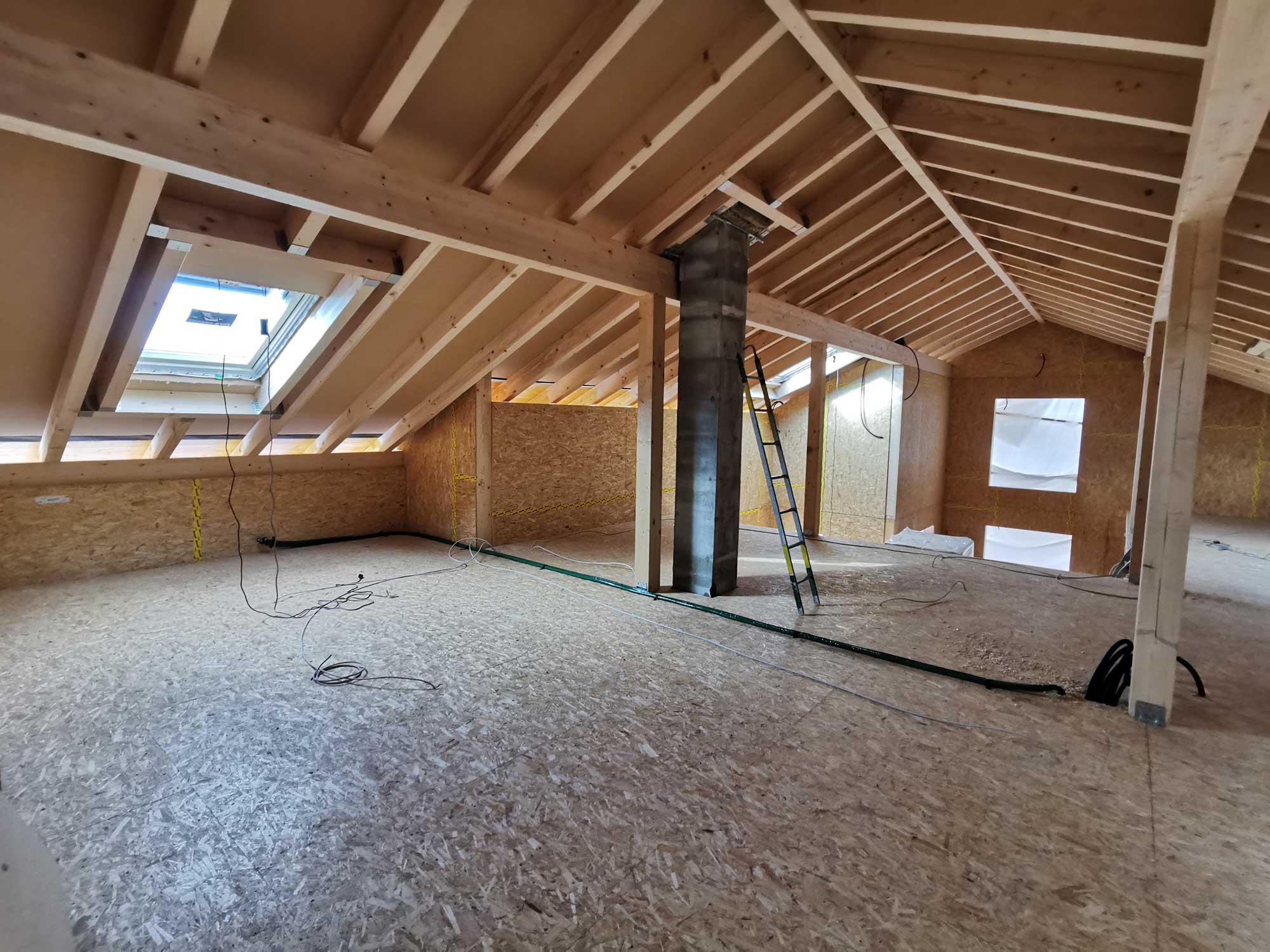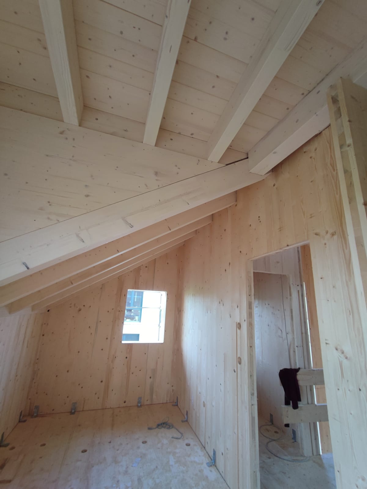 Dachstuhl aus Holzmassiv, Lehmputz innen
