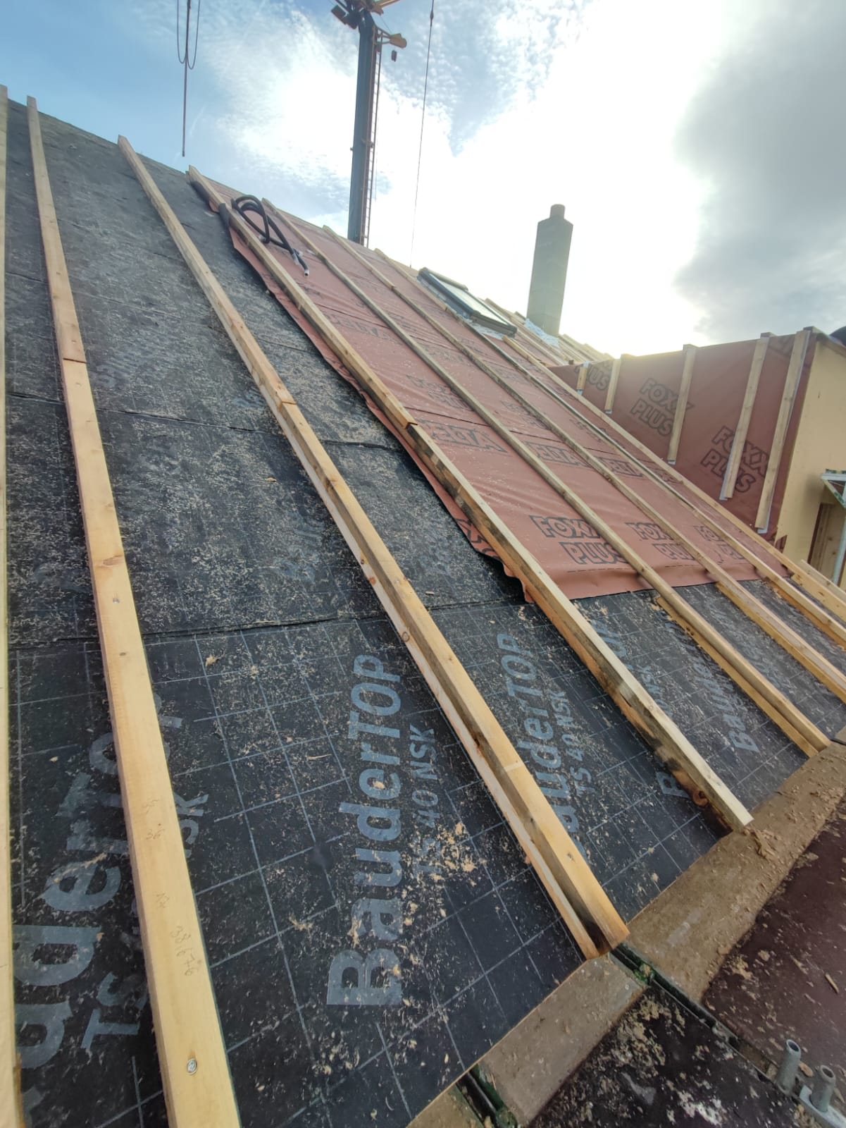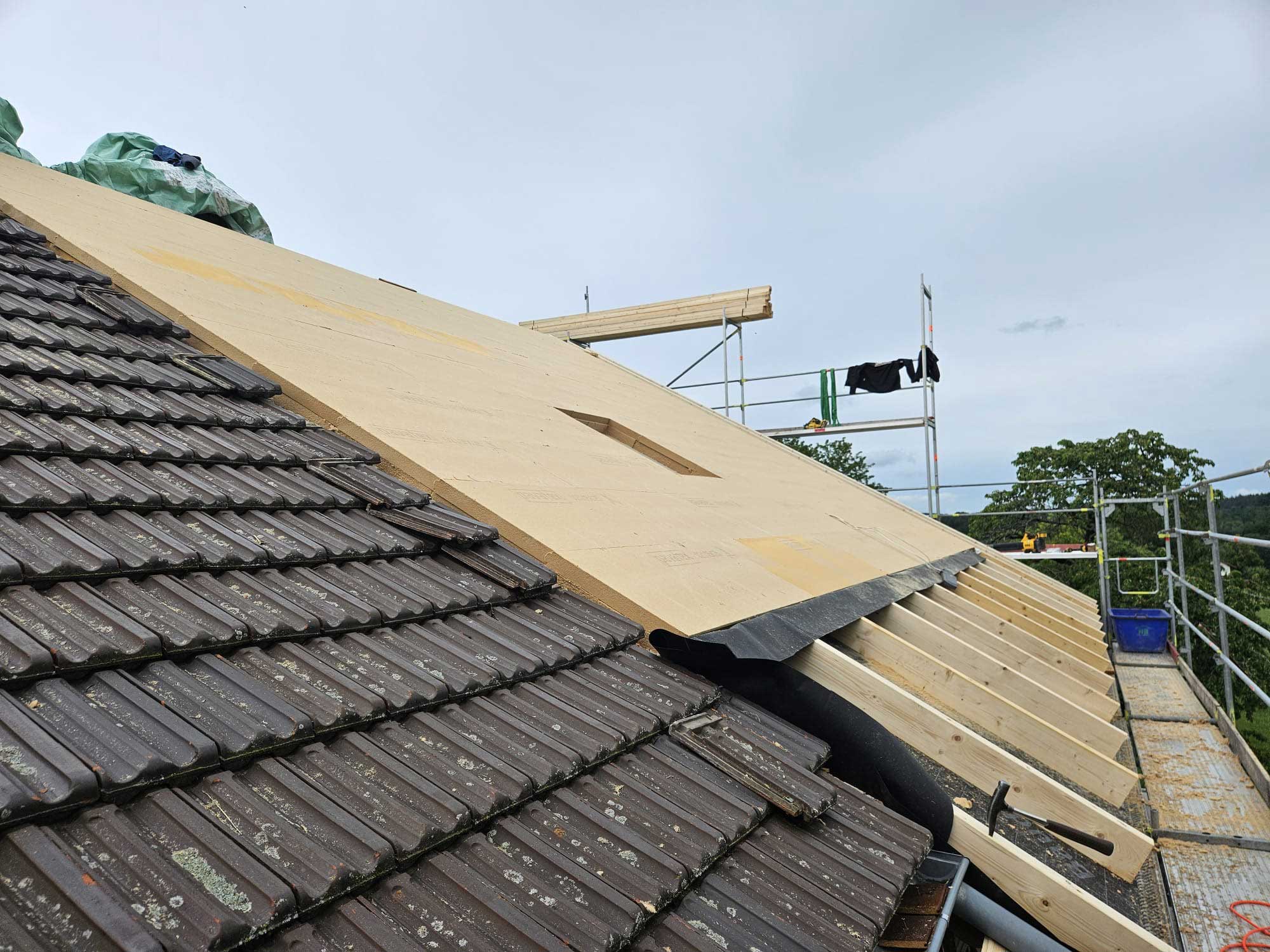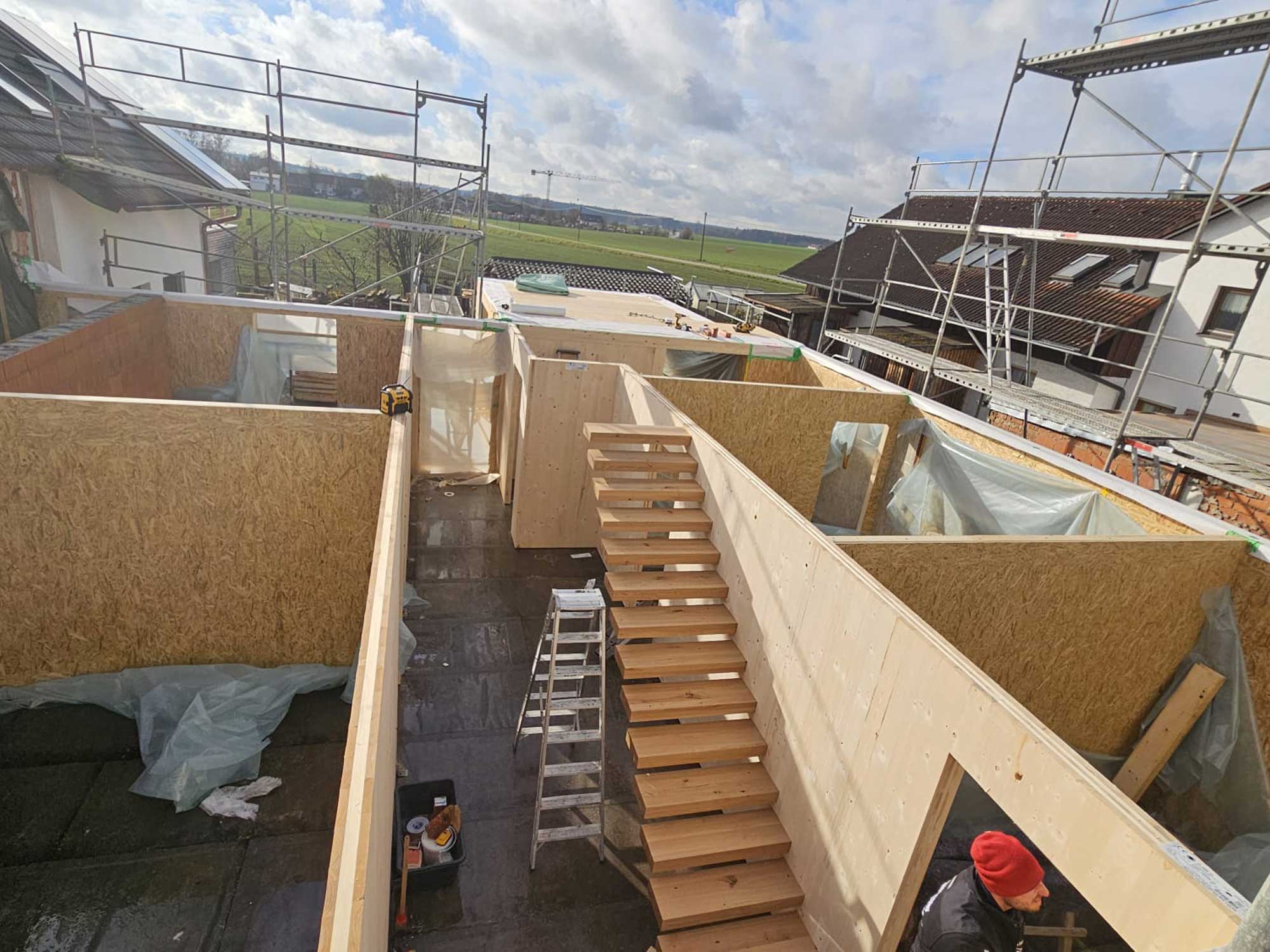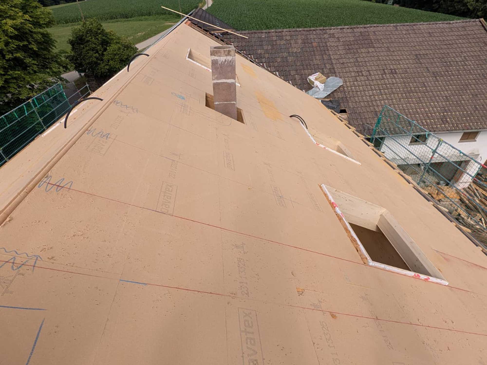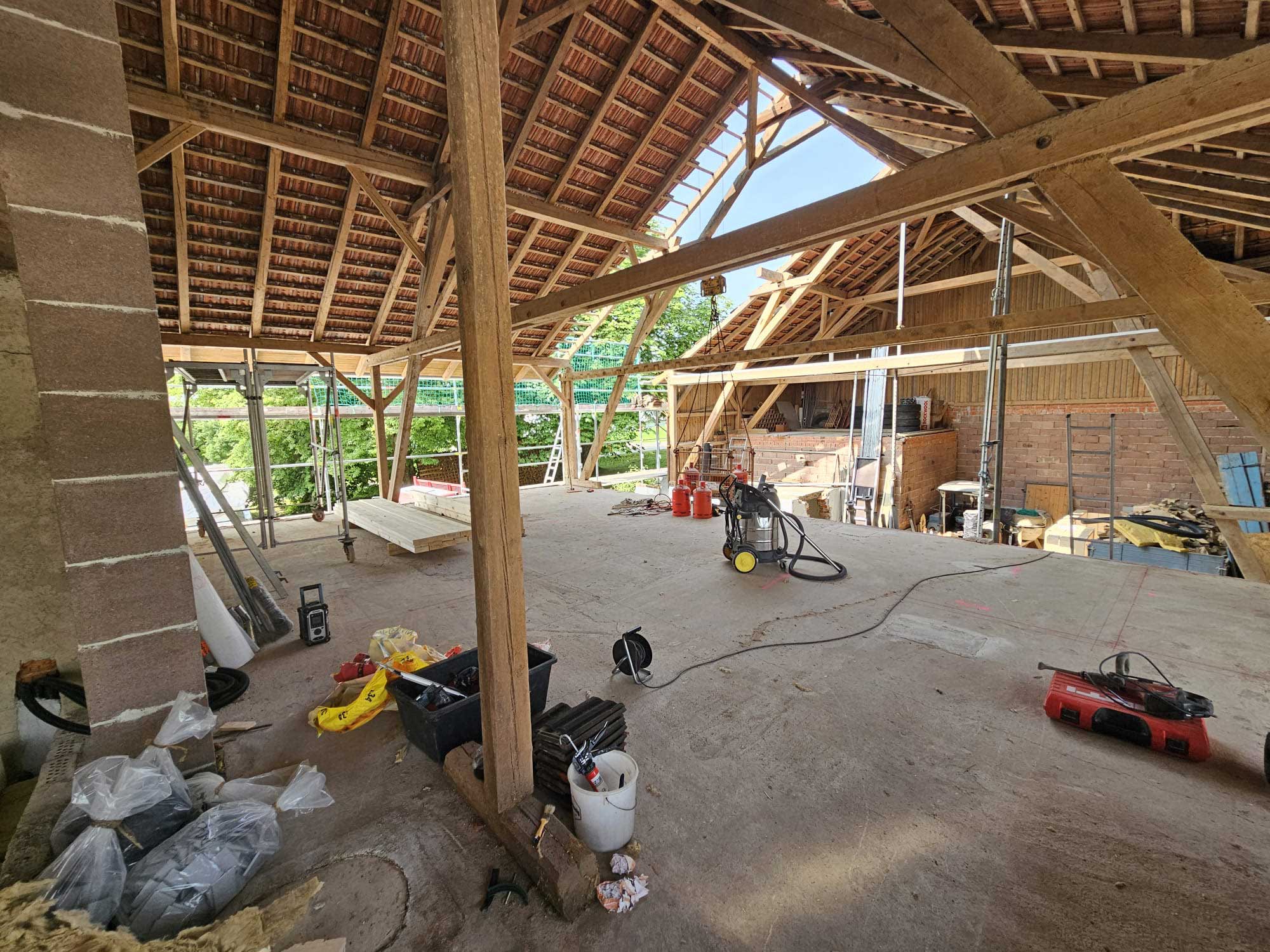 Dachstuhl aus Holzmassiv, Lehmputz innen